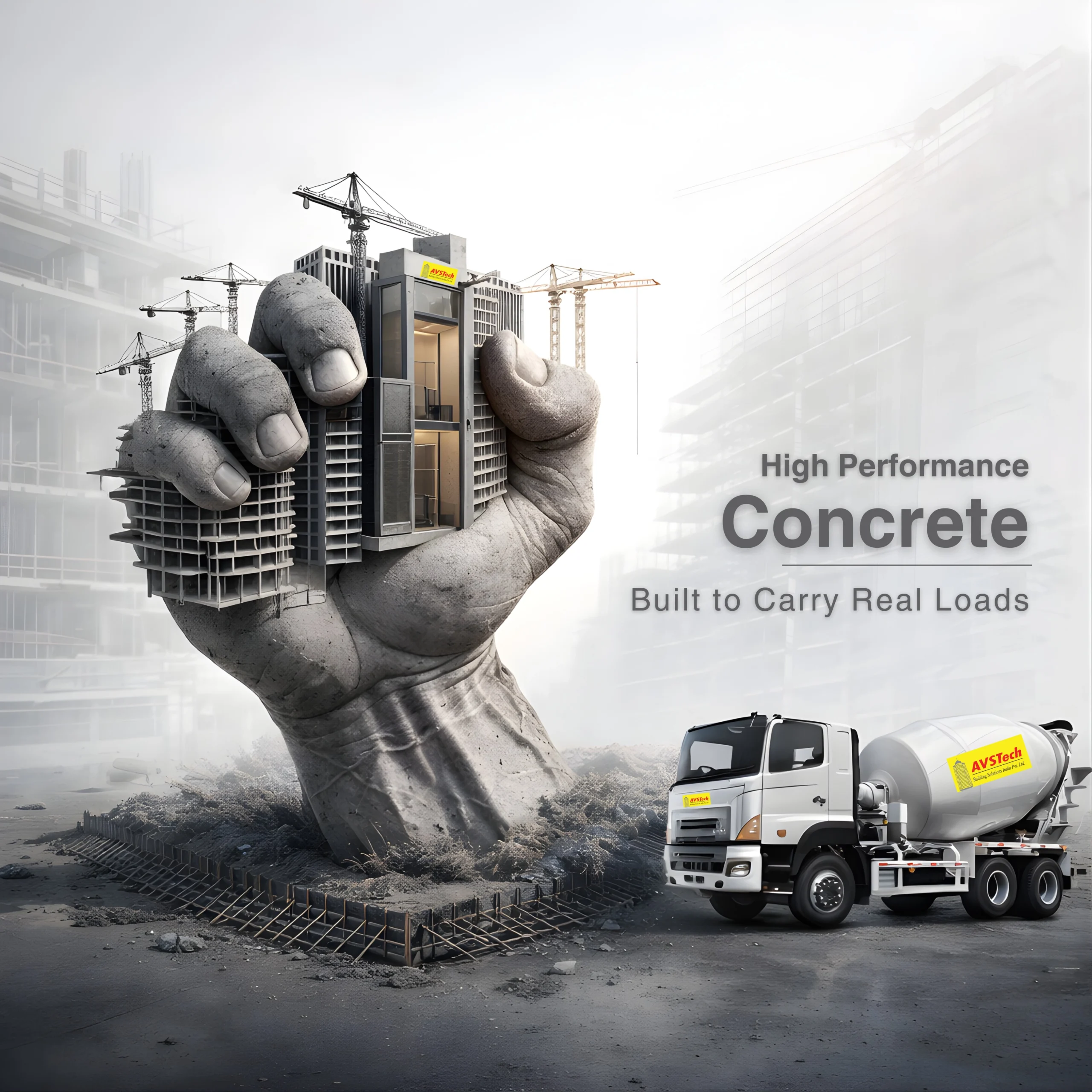 High Performance Concrete is a high grade high performance concrete capable of achieving 100Mpa compressive strength. AVS Tech High Performance Concrete is solution that caters to industry’s need for high performance concrete. It is produced by multiple blend of binder materials along with the use new generation superplasticizers. AVS Tech High Performance Concrete is a blessing for modern urban high rise structures.